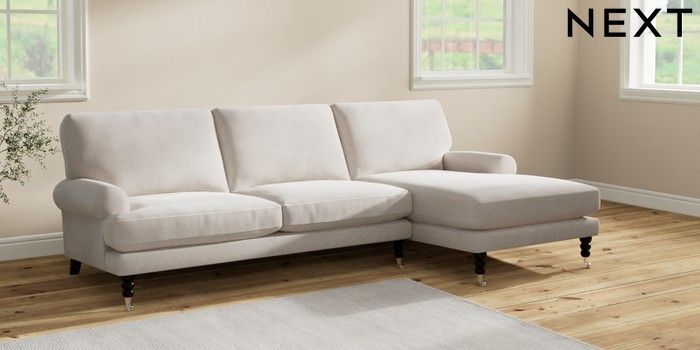 7.2.10 Erin Deep Relaxed Sit Medium Sofa Chaise - Right Hand Chunky Chenille Oyster High Classic Turned Chrome Castor - Dark | Made Click here to use our website with more accessibility support, for example screen readers