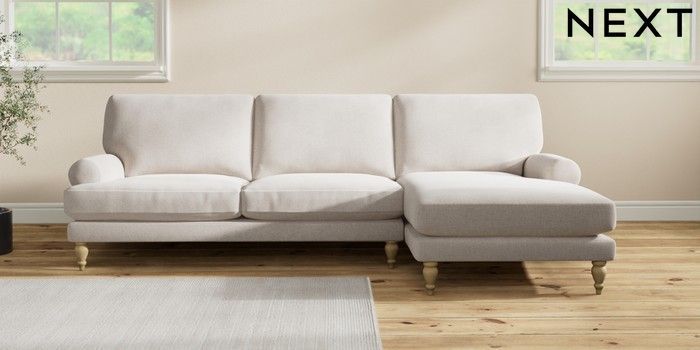 7.2.10 Erin Deep Relaxed Sit Medium Sofa Chaise - Right Hand Chunky Chenille Oyster High Classic Turned - Light | Made Click here to use our website with more accessibility support, for example screen readers