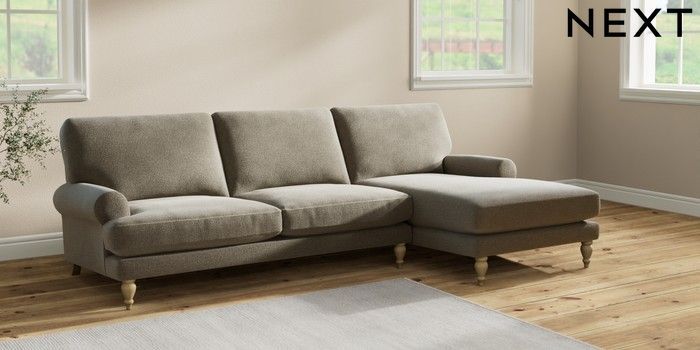 7.2.10 Erin Deep Relaxed Sit Medium Sofa Chaise - Right Hand Chunky Marl Light Olive Green High Classic Turned - Light | Made Click here to use our website with more accessibility support, for example screen readers