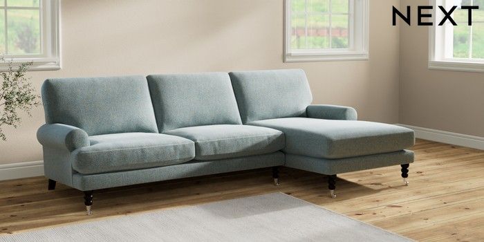 7.2.10 Erin Deep Relaxed Sit Medium Sofa Chaise - Right Hand Chunky Marl Mid Blue High Classic Turned Chrome Castor - Dark | Made Click here to use our website with more accessibility support, for example screen readers