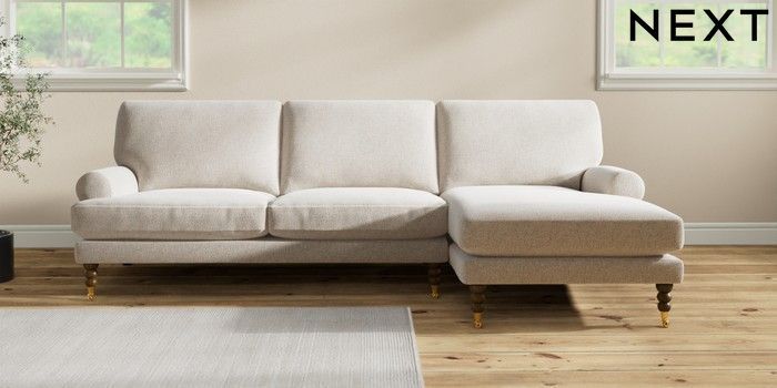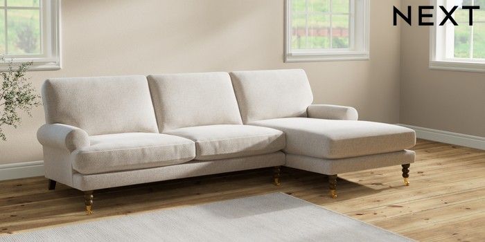 7.2.10 Erin Deep Relaxed Sit Medium Sofa Chaise - Right Hand Chunky Marl Oyster High Classic Turned Brass Castor - Mid | Made Click here to use our website with more accessibility support, for example screen readers