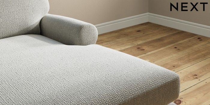 7.2.10 Erin Deep Relaxed Sit Medium Sofa Chaise - Right Hand Chunky Texture Dove High Classic Turned Brass Castor - Dark | Made Click here to use our website with more accessibility support, for example screen readers
