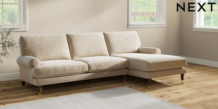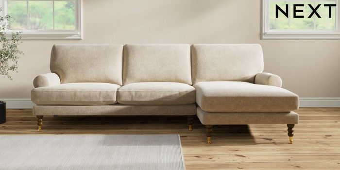 7.2.10 Erin Deep Relaxed Sit Medium Sofa Chaise - Right Hand Chunky Weave Cream High Classic Turned Brass Castor - Mid | Made Click here to use our website with more accessibility support, for example screen readers