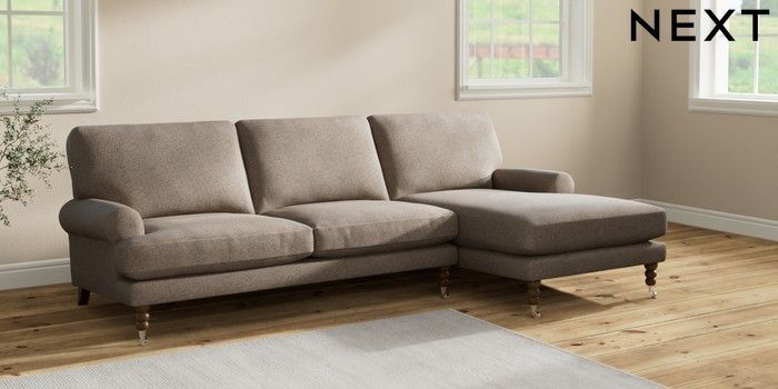 7.2.10 Erin Deep Relaxed Sit Medium Sofa Chaise - Right Hand Chunky Weave Dark Natural High Classic Turned Chrome Castor - Mid | Made Click here to use our website with more accessibility support, for example screen readers
