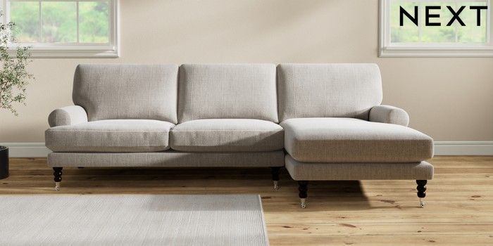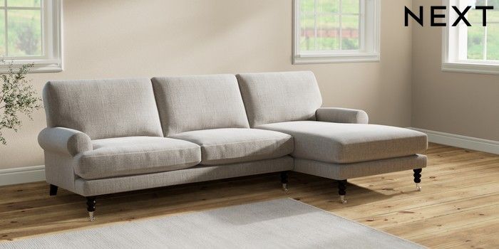 7.2.10 Erin Deep Relaxed Sit Medium Sofa Chaise - Right Hand Chunky Weave Dove Grey High Classic Turned Chrome Castor - Dark | Made Click here to use our website with more accessibility support, for example screen readers