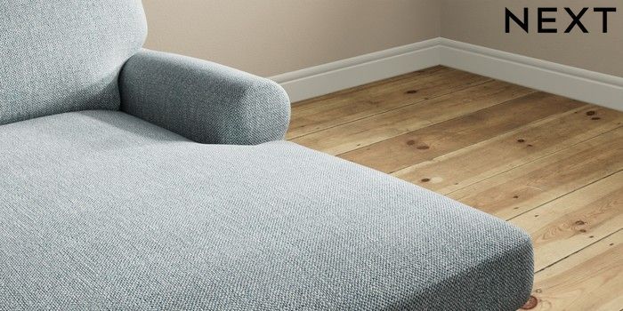 7.2.10 Erin Deep Relaxed Sit Medium Sofa Chaise - Right Hand Chunky Weave Mid Blue High Classic Turned - Dark | Made Click here to use our website with more accessibility support, for example screen readers