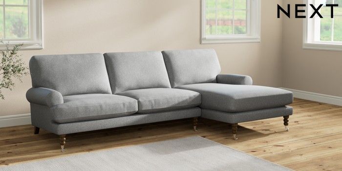 7.2.10 Erin Deep Relaxed Sit Medium Sofa Chaise - Right Hand Chunky Weave Mid Grey High Classic Turned Chrome Castor - Mid | Made Click here to use our website with more accessibility support, for example screen readers