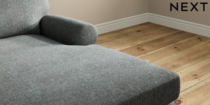 7.2.10 Erin Deep Relaxed Sit Medium Sofa Chaise - Right Hand Cotswold Chenille Dark Grey High Classic Turned Brass Castor - Mid | Made Click here to use our website with more accessibility support, for example screen readers