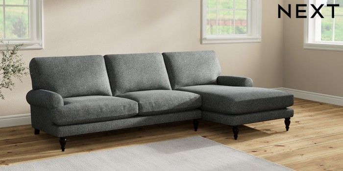 7.2.10 Erin Deep Relaxed Sit Medium Sofa Chaise - Right Hand Cotswold Chenille Dark Grey High Classic Turned - Dark | Made Click here to use our website with more accessibility support, for example screen readers