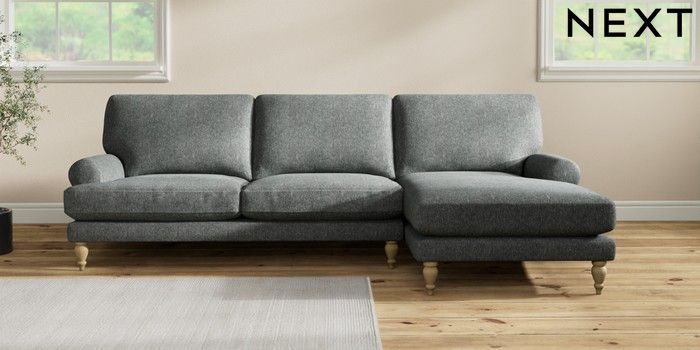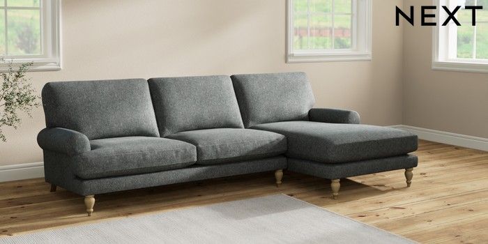 7.2.10 Erin Deep Relaxed Sit Medium Sofa Chaise - Right Hand Cotswold Chenille Dark Grey High Classic Turned - Light | Made Click here to use our website with more accessibility support, for example screen readers