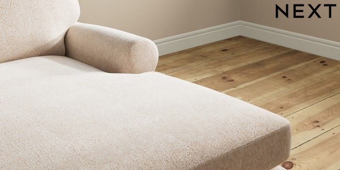 7.2.10 Erin Deep Relaxed Sit Medium Sofa Chaise - Right Hand Cotswold Chenille Light Natural High Classic Turned Brass Castor - Mid | Made Click here to use our website with more accessibility support, for example screen readers