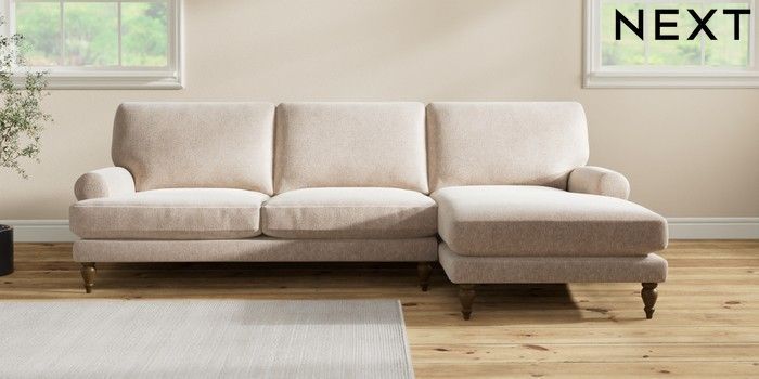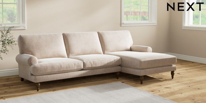 7.2.10 Erin Deep Relaxed Sit Medium Sofa Chaise - Right Hand Cotswold Chenille Light Natural High Classic Turned - Mid | Made Click here to use our website with more accessibility support, for example screen readers