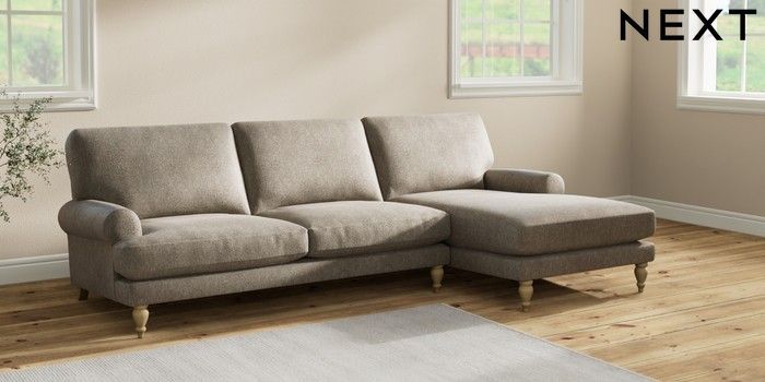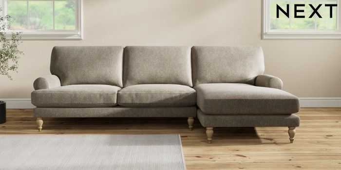 7.2.10 Erin Deep Relaxed Sit Medium Sofa Chaise - Right Hand Cotswold Chenille Mid Mink Brown High Classic Turned - Light | Made Click here to use our website with more accessibility support, for example screen readers