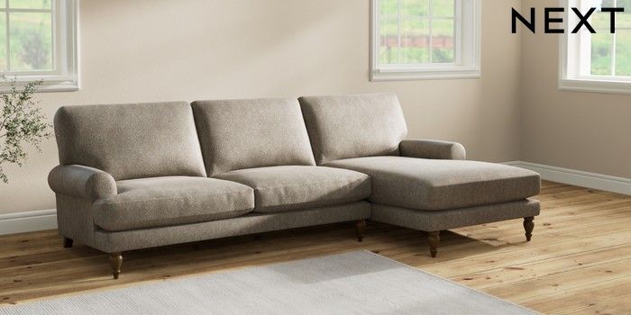 7.2.10 Erin Deep Relaxed Sit Medium Sofa Chaise - Right Hand Cotswold Chenille Mid Mink Brown High Classic Turned - Mid | Made Click here to use our website with more accessibility support, for example screen readers