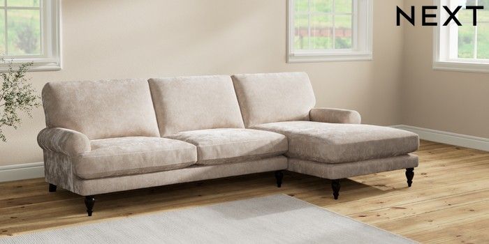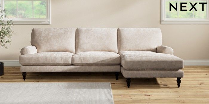 7.2.10 Erin Deep Relaxed Sit Medium Sofa Chaise - Right Hand Distressed Velour Mid Natural High Classic Turned - Dark | Made Click here to use our website with more accessibility support, for example screen readers