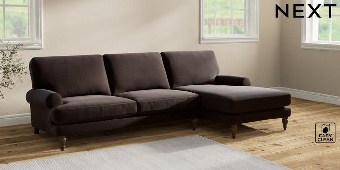 7.2.10 Erin Deep Relaxed Sit Medium Sofa Chaise - Right Hand Fine Chenille Easy Clean Chocolate Brown High Classic Turned - Mid | Made Click here to use our website with more accessibility support, for example screen readers