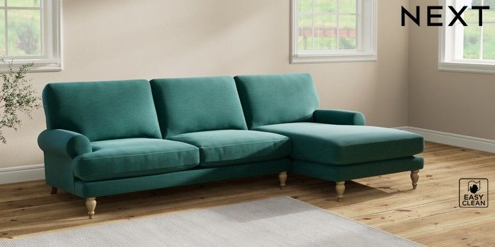 7.2.10 Erin Deep Relaxed Sit Medium Sofa Chaise - Right Hand Fine Chenille Easy Clean Dark Juniper Green High Classic Turned - Light | Made Click here to use our website with more accessibility support, for example screen readers