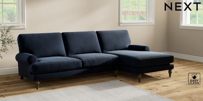 7.2.10 Erin Deep Relaxed Sit Medium Sofa Chaise - Right Hand Fine Chenille Easy Clean Dark Navy Blue High Classic Turned - Mid | Made Click here to use our website with more accessibility support, for example screen readers