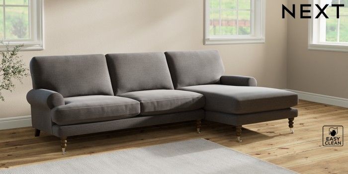 7.2.10 Erin Deep Relaxed Sit Medium Sofa Chaise - Right Hand Fine Chenille Easy Clean Dark Smoke Grey High Classic Turned Chrome Castor - Mid | Made Click here to use our website with more accessibility support, for example screen readers