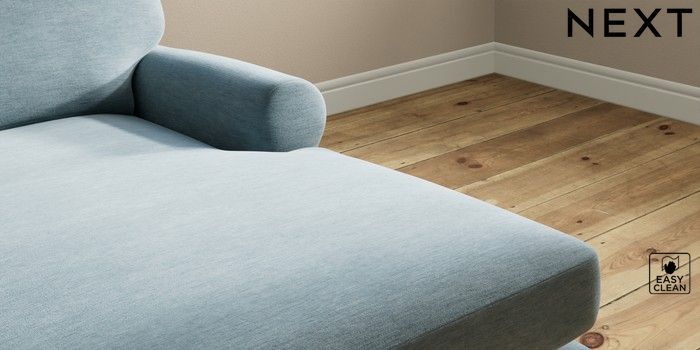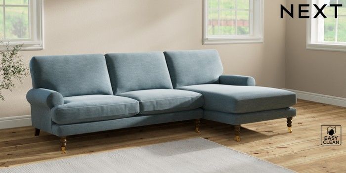 7.2.10 Erin Deep Relaxed Sit Medium Sofa Chaise - Right Hand Fine Chenille Easy Clean Mid Blue High Classic Turned Brass Castor - Mid | Made Click here to use our website with more accessibility support, for example screen readers