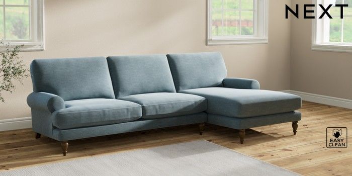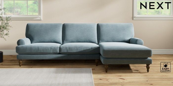 7.2.10 Erin Deep Relaxed Sit Medium Sofa Chaise - Right Hand Fine Chenille Easy Clean Mid Blue High Classic Turned - Mid | Made Click here to use our website with more accessibility support, for example screen readers