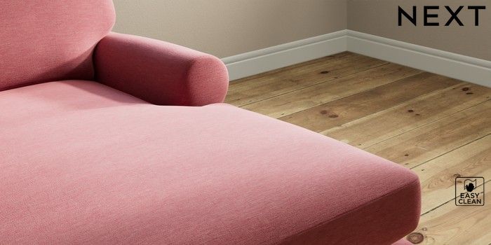 7.2.10 Erin Deep Relaxed Sit Medium Sofa Chaise - Right Hand Fine Chenille Easy Clean Mid Pink High Classic Turned Brass Castor - Mid | Made Click here to use our website with more accessibility support, for example screen readers