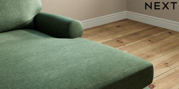 7.2.10 Erin Deep Relaxed Sit Medium Sofa Chaise - Right Hand Luxe Chenille Dark Green High Classic Turned Brass Castor - Mid | Made Click here to use our website with more accessibility support, for example screen readers