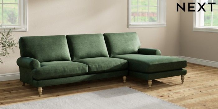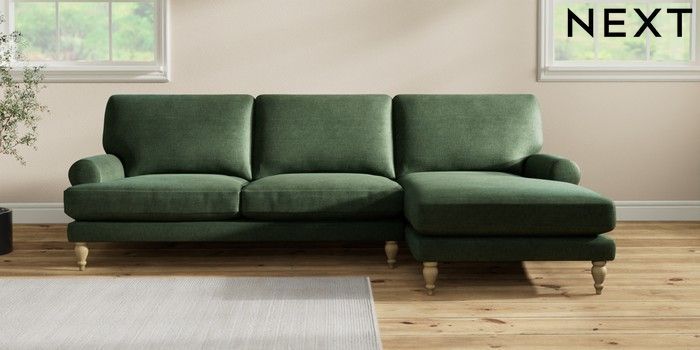 7.2.10 Erin Deep Relaxed Sit Medium Sofa Chaise - Right Hand Luxe Chenille Dark Green High Classic Turned - Light | Made Click here to use our website with more accessibility support, for example screen readers