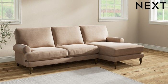7.2.10 Erin Deep Relaxed Sit Medium Sofa Chaise - Right Hand Luxe Chenille Mid Natural High Classic Turned - Mid | Made Click here to use our website with more accessibility support, for example screen readers