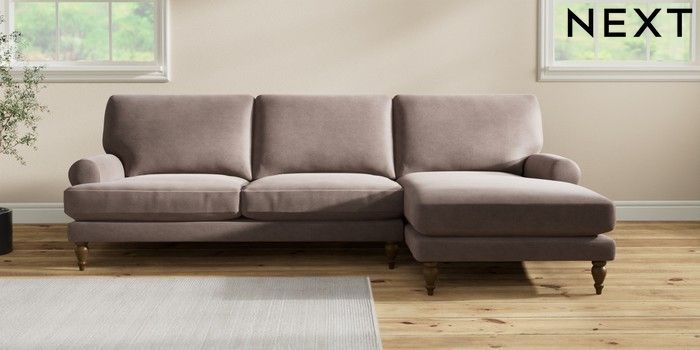 7.2.10 Erin Deep Relaxed Sit Medium Sofa Chaise - Right Hand Luxe Chenille Mink Brown High Classic Turned - Mid | Made Click here to use our website with more accessibility support, for example screen readers