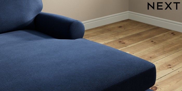 7.2.10 Erin Deep Relaxed Sit Medium Sofa Chaise - Right Hand Luxe Chenille Navy Blue High Classic Turned Brass Castor - Light | Made Click here to use our website with more accessibility support, for example screen readers