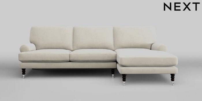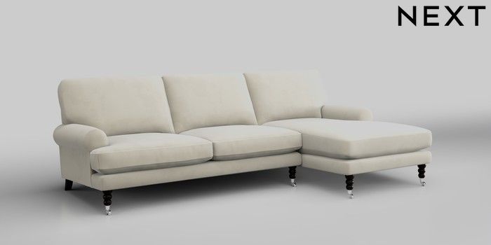 7.2.10 Erin Deep Relaxed Sit Medium Sofa Chaise - Right Hand Luxe Chenille Oyster High Classic Turned Chrome Castor - Dark | Made Click here to use our website with more accessibility support, for example screen readers