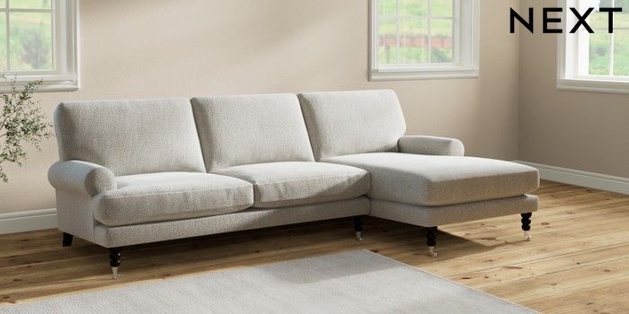 7.2.10 Erin Deep Relaxed Sit Medium Sofa Chaise - Right Hand Multi Weave Light Blue High Classic Turned Chrome Castor - Dark | Made Click here to use our website with more accessibility support, for example screen readers