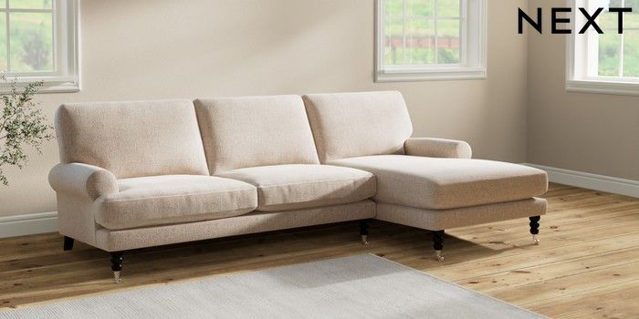 7.2.10 Erin Deep Relaxed Sit Medium Sofa Chaise - Right Hand Multi Weave Mid Natural High Classic Turned Chrome Castor - Dark | Made Click here to use our website with more accessibility support, for example screen readers