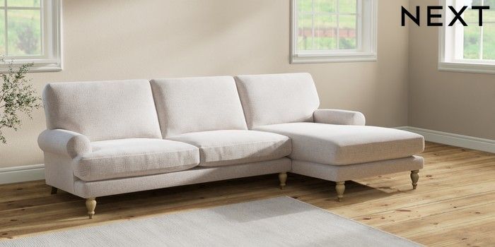 7.2.10 Erin Deep Relaxed Sit Medium Sofa Chaise - Right Hand Multi Weave Oyster High Classic Turned - Light | Made Click here to use our website with more accessibility support, for example screen readers