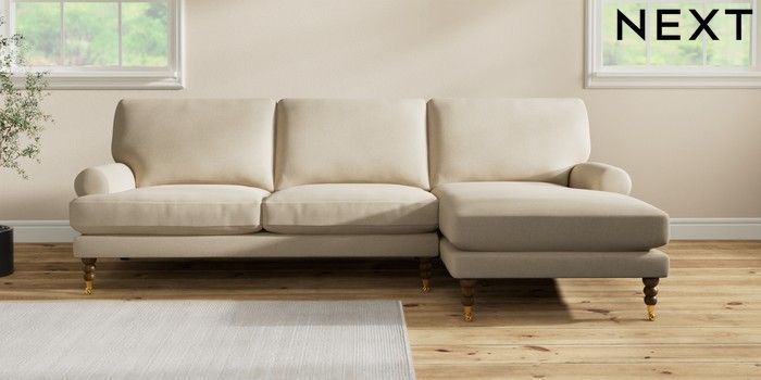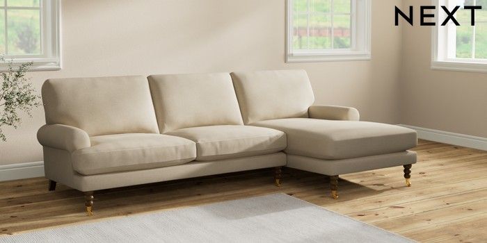 7.2.10 Erin Deep Relaxed Sit Medium Sofa Chaise - Right Hand Natural Mix Light Natural High Classic Turned Brass Castor - Mid | Made Click here to use our website with more accessibility support, for example screen readers