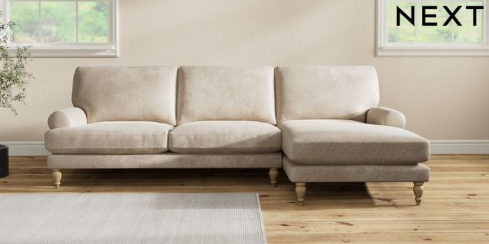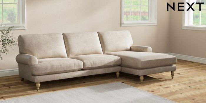 7.2.10 Erin Deep Relaxed Sit Medium Sofa Chaise - Right Hand Plush Chenille Light Natural High Classic Turned - Light | Made Click here to use our website with more accessibility support, for example screen readers