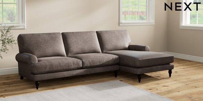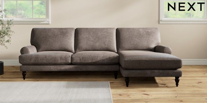 7.2.10 Erin Deep Relaxed Sit Medium Sofa Chaise - Right Hand Plush Chenille Mink Brown High Classic Turned - Dark | Made Click here to use our website with more accessibility support, for example screen readers