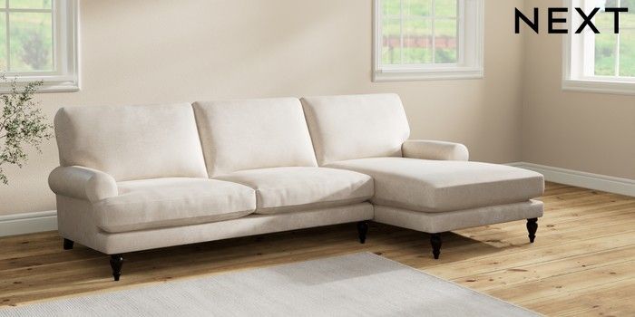 7.2.10 Erin Deep Relaxed Sit Medium Sofa Chaise - Right Hand Plush Chenille Oyster High Classic Turned - Dark | Made Click here to use our website with more accessibility support, for example screen readers