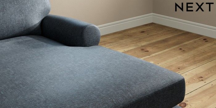 7.2.10 Erin Deep Relaxed Sit Medium Sofa Chaise - Right Hand Plush Chenille Slate Blue High Classic Turned Brass Castor - Mid | Made Click here to use our website with more accessibility support, for example screen readers