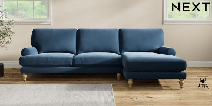 7.2.10 Erin Deep Relaxed Sit Medium Sofa Chaise - Right Hand Plush Velvet Easy Clean Airforce Blue High Classic Turned - Light | Made Click here to use our website with more accessibility support, for example screen readers