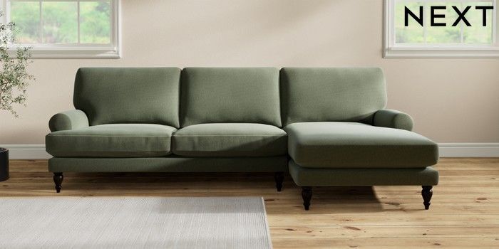 7.2.10 Erin Deep Relaxed Sit Medium Sofa Chaise - Right Hand Relaxed Linen Look Dark Green High Classic Turned - Dark | Made Click here to use our website with more accessibility support, for example screen readers