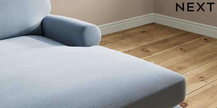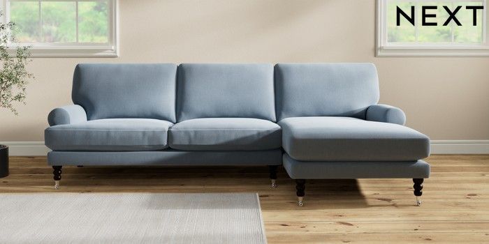 7.2.10 Erin Deep Relaxed Sit Medium Sofa Chaise - Right Hand Relaxed Linen Look Mid Blue High Classic Turned Chrome Castor - Dark | Made Click here to use our website with more accessibility support, for example screen readers