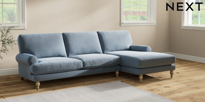 7.2.10 Erin Deep Relaxed Sit Medium Sofa Chaise - Right Hand Relaxed Linen Look Mid Blue High Classic Turned - Light | Made Click here to use our website with more accessibility support, for example screen readers