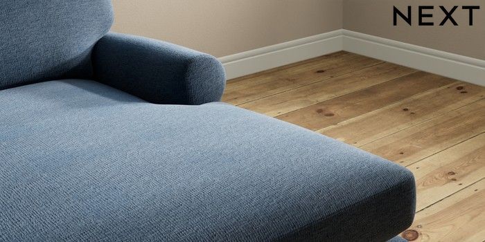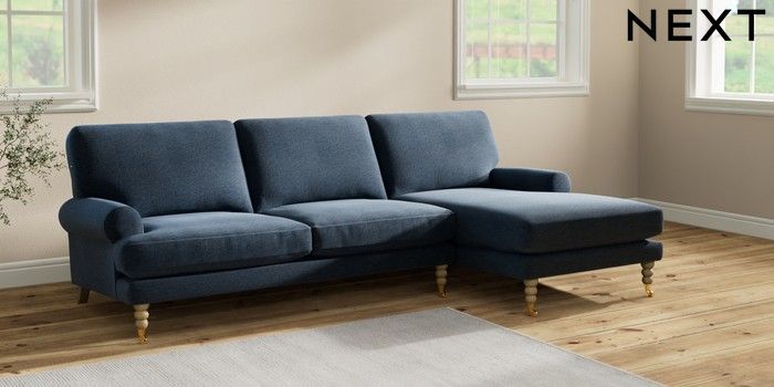 7.2.10 Erin Deep Relaxed Sit Medium Sofa Chaise - Right Hand Ripple Chenille Dark Blue High Classic Turned Brass Castor - Light | Made Click here to use our website with more accessibility support, for example screen readers