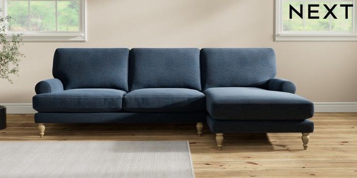 7.2.10 Erin Deep Relaxed Sit Medium Sofa Chaise - Right Hand Ripple Chenille Dark Blue High Classic Turned - Light | Made Click here to use our website with more accessibility support, for example screen readers