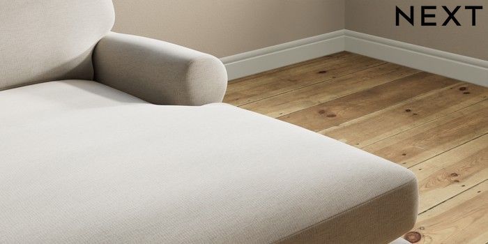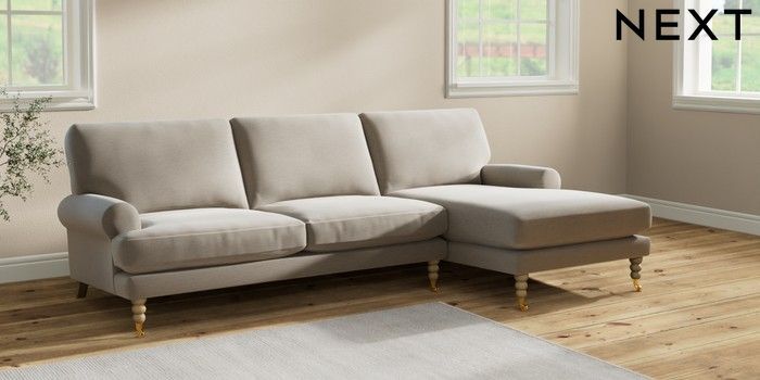 7.2.10 Erin Deep Relaxed Sit Medium Sofa Chaise - Right Hand Ripple Chenille Light Natural High Classic Turned Brass Castor - Light | Made Click here to use our website with more accessibility support, for example screen readers