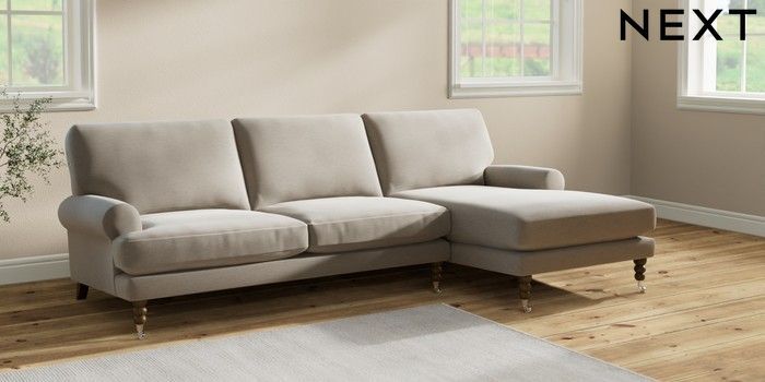 7.2.10 Erin Deep Relaxed Sit Medium Sofa Chaise - Right Hand Ripple Chenille Light Natural High Classic Turned Chrome Castor - Mid | Made Click here to use our website with more accessibility support, for example screen readers