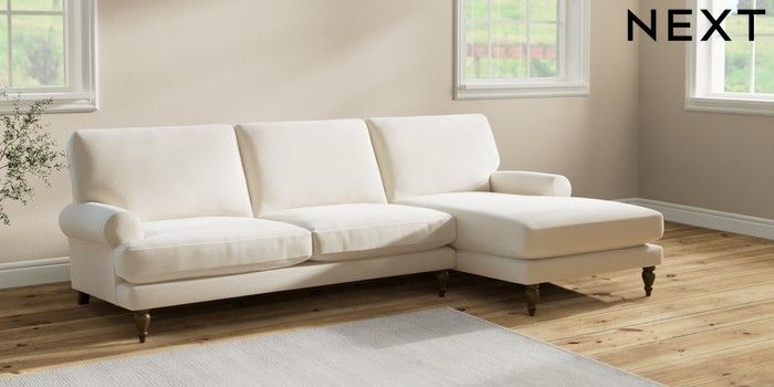 7.2.10 Erin Deep Relaxed Sit Medium Sofa Chaise - Right Hand Ripple Chenille Oyster High Classic Turned - Mid | Made Click here to use our website with more accessibility support, for example screen readers