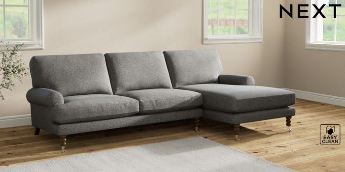 7.2.10 Erin Deep Relaxed Sit Medium Sofa Chaise - Right Hand Tweedy Blend Easy Clean Dark Grey High Classic Turned Chrome Castor - Mid | Made Click here to use our website with more accessibility support, for example screen readers
